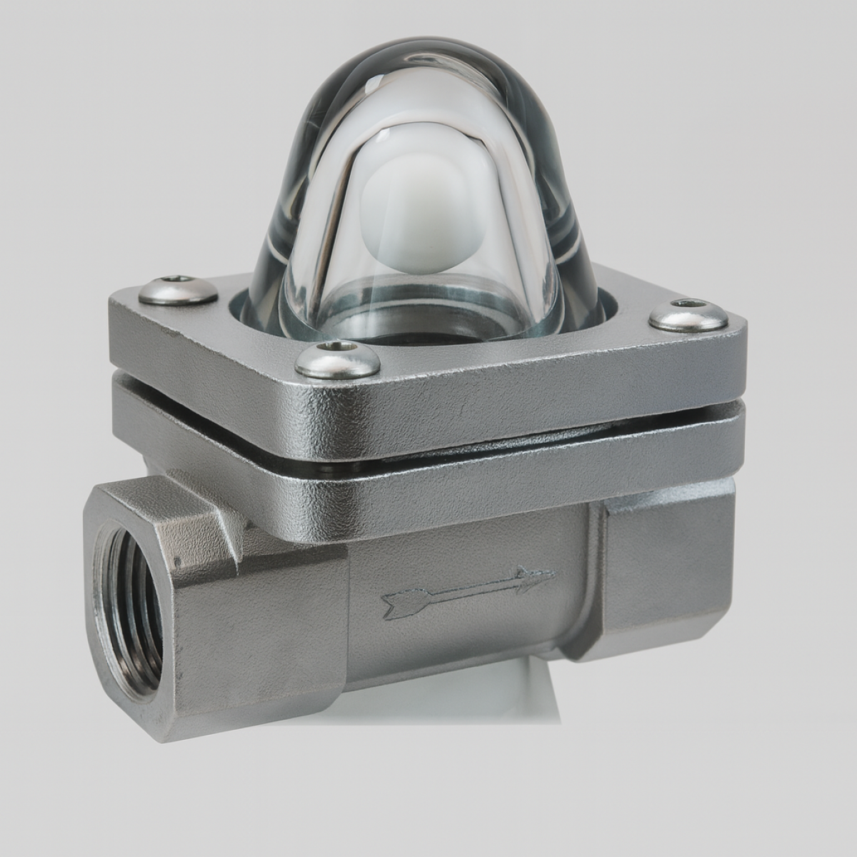 Tags: vista ball flow indicator, ball-type sight flow indicator, condensate flow indicator, PTFE ball flow indicator, John Moncrieff vista ball, visual flow indicator stainless steel
